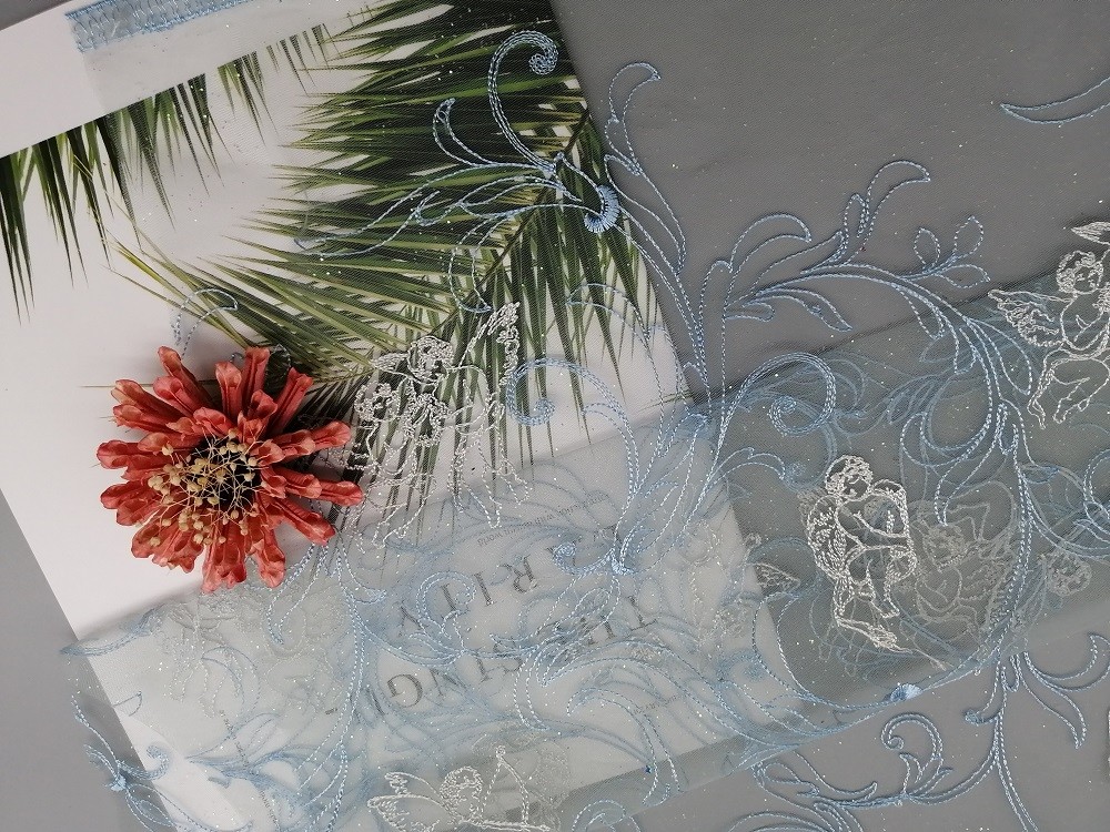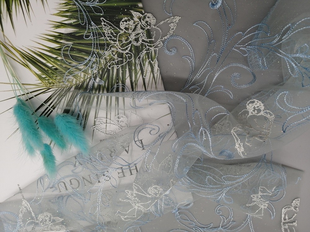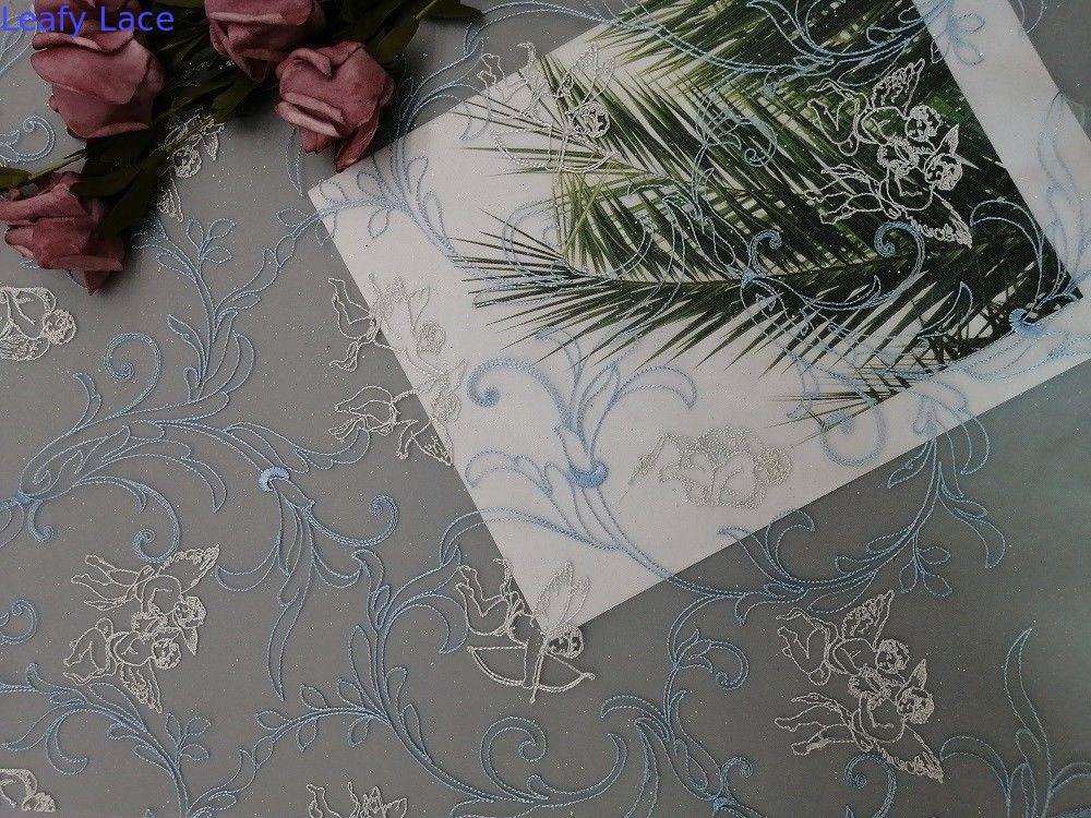- Фольга сетки Bule Тюль напечатала покрытую фольгой ткань вышивки все продавцы для брендов одежды соотвествуют стандарта 100 OEKO-Tex.