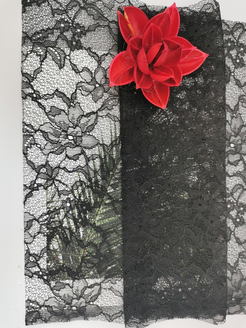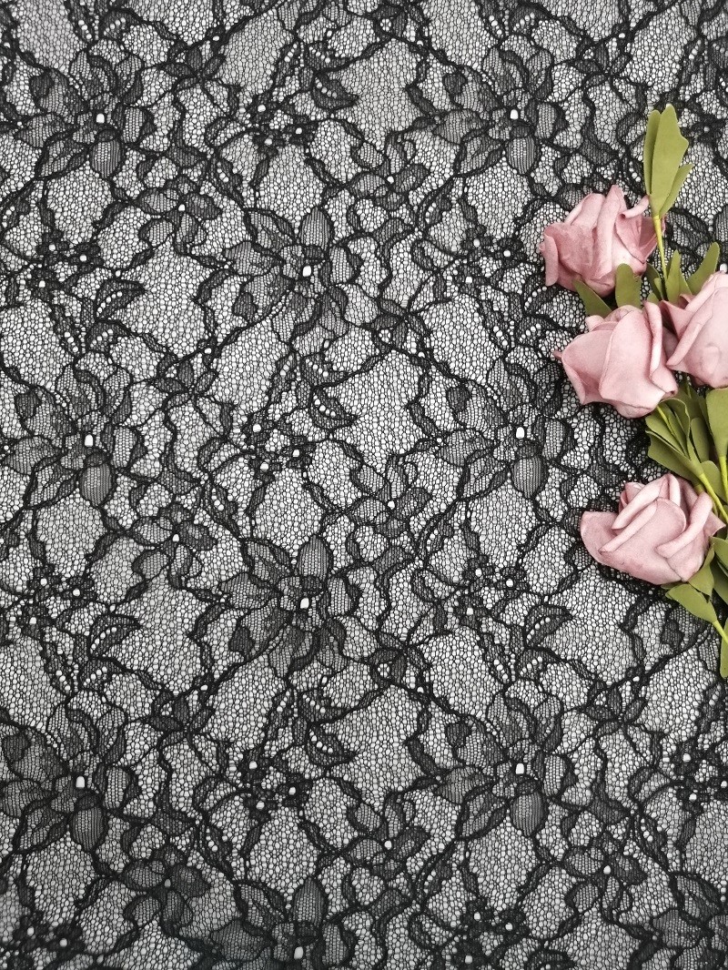 шнурок Raschel вышивки ткани сетки Тюль шнурка chantilly черноты 100%nylon французский