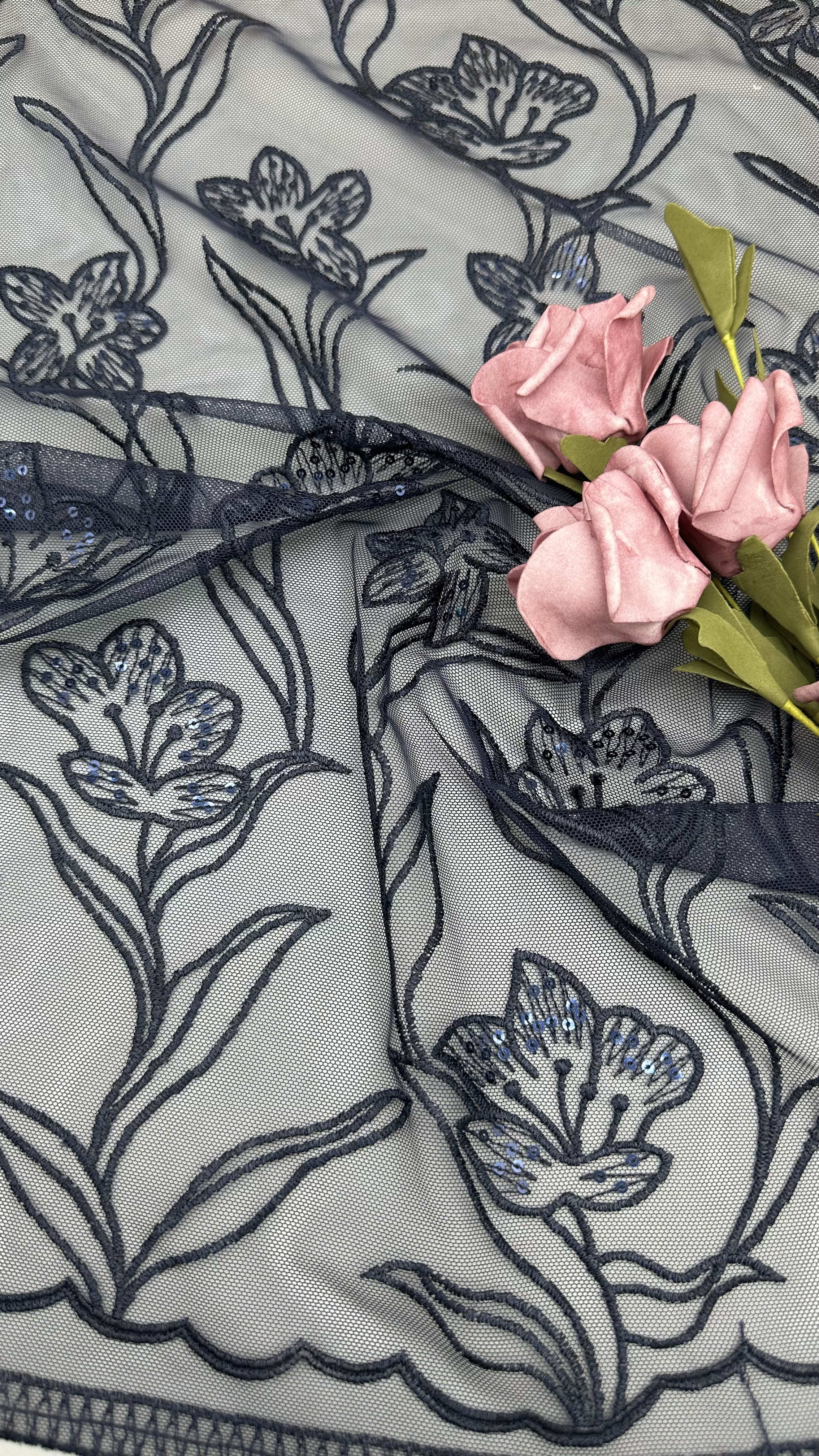 В качестве основы используются высококачественные ткани, такие как тюль, органица, шелк или полиэстер.